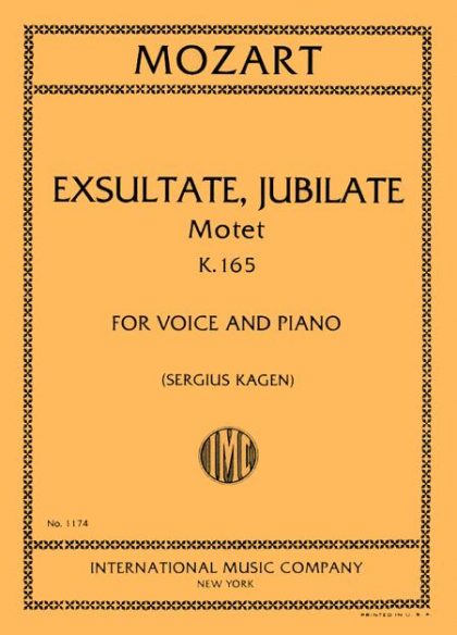 Exsultate, jubilate was composed in 1773 during Mozart's soujourn in Italy, when he was 17 years of age. It was written for an eminent Roman castrato, Vanazio Rauzzini, who operformed it in the Church of Theatines. A few months earlier Rauzzini sang the part of Cecilio in Mozart's opera “Lucio Silla.”