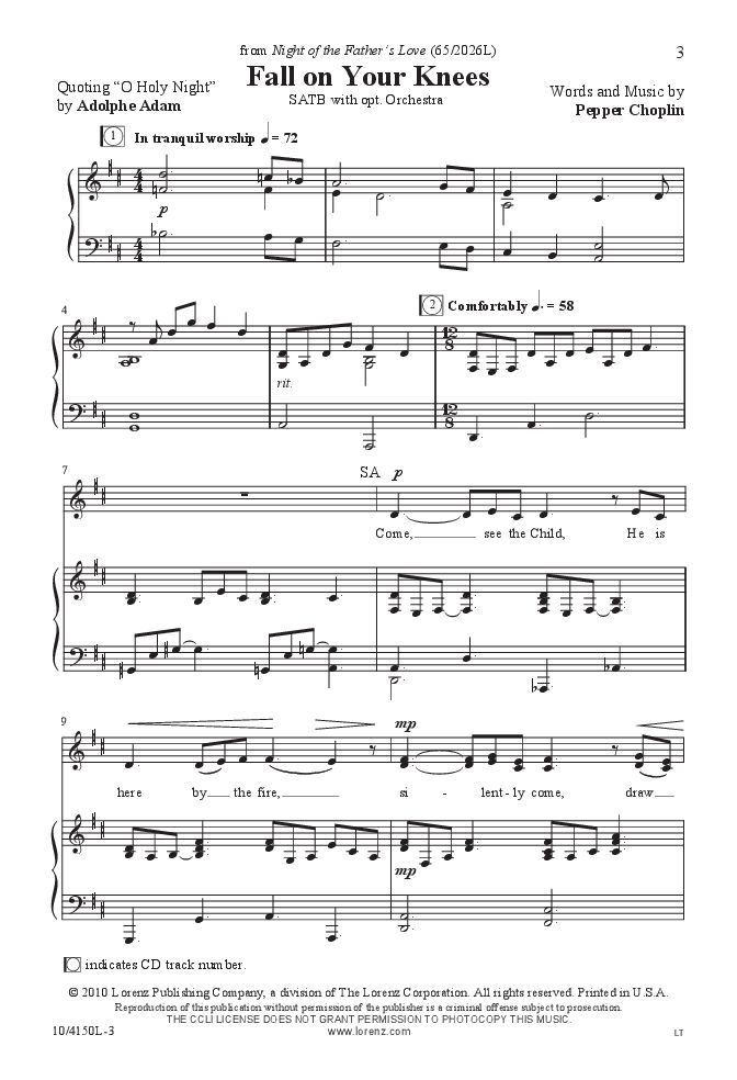 Pepper Choplin has seamlessly woven original music and lyrics around the beloved carol “O Holy Night” to create a striking and memorable Christmas Eve anthem. Lush choral writing builds throughout the piece to a glorious peak before ending in soft reflection. Optional orchestral accompaniment is available to enhance the performance of this striking piece.