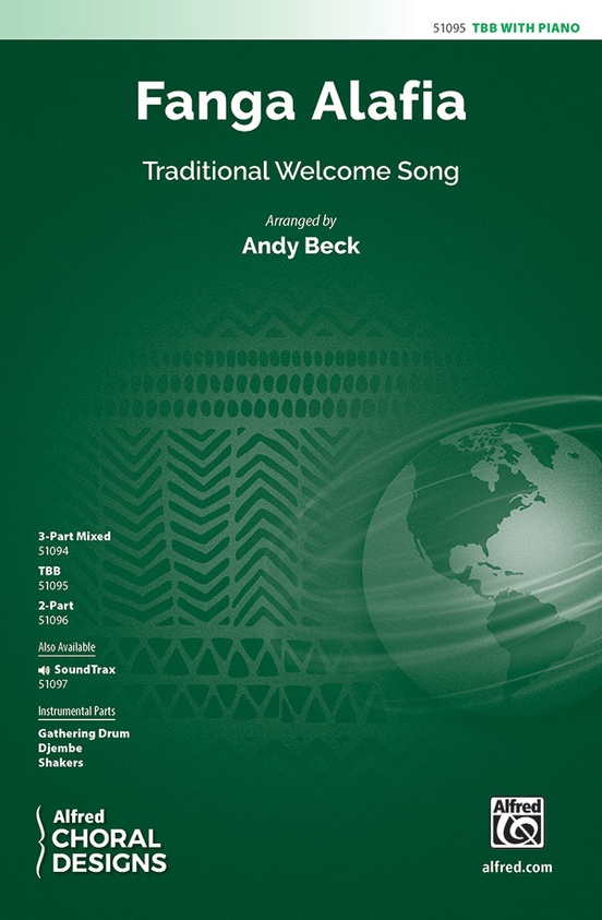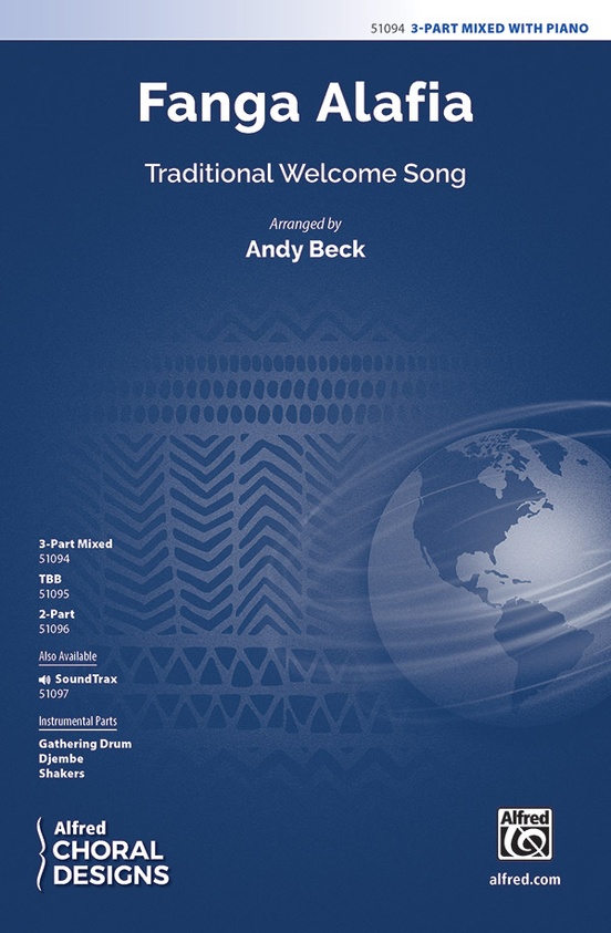 This lively welcome song traditionally accompanies the West African fanga dance. Built on the familiar tune (plus some new material and a few English words), this general music class favorite is fully developed as a choral arrangement. Scattered handclaps, syncopated rhythms, and bright harmonies make this well-crafted setting a joy to perform! A modulating breakdown section in the middle offers the opportunity to incorporate the dance. Downloadable percussion parts are available online.