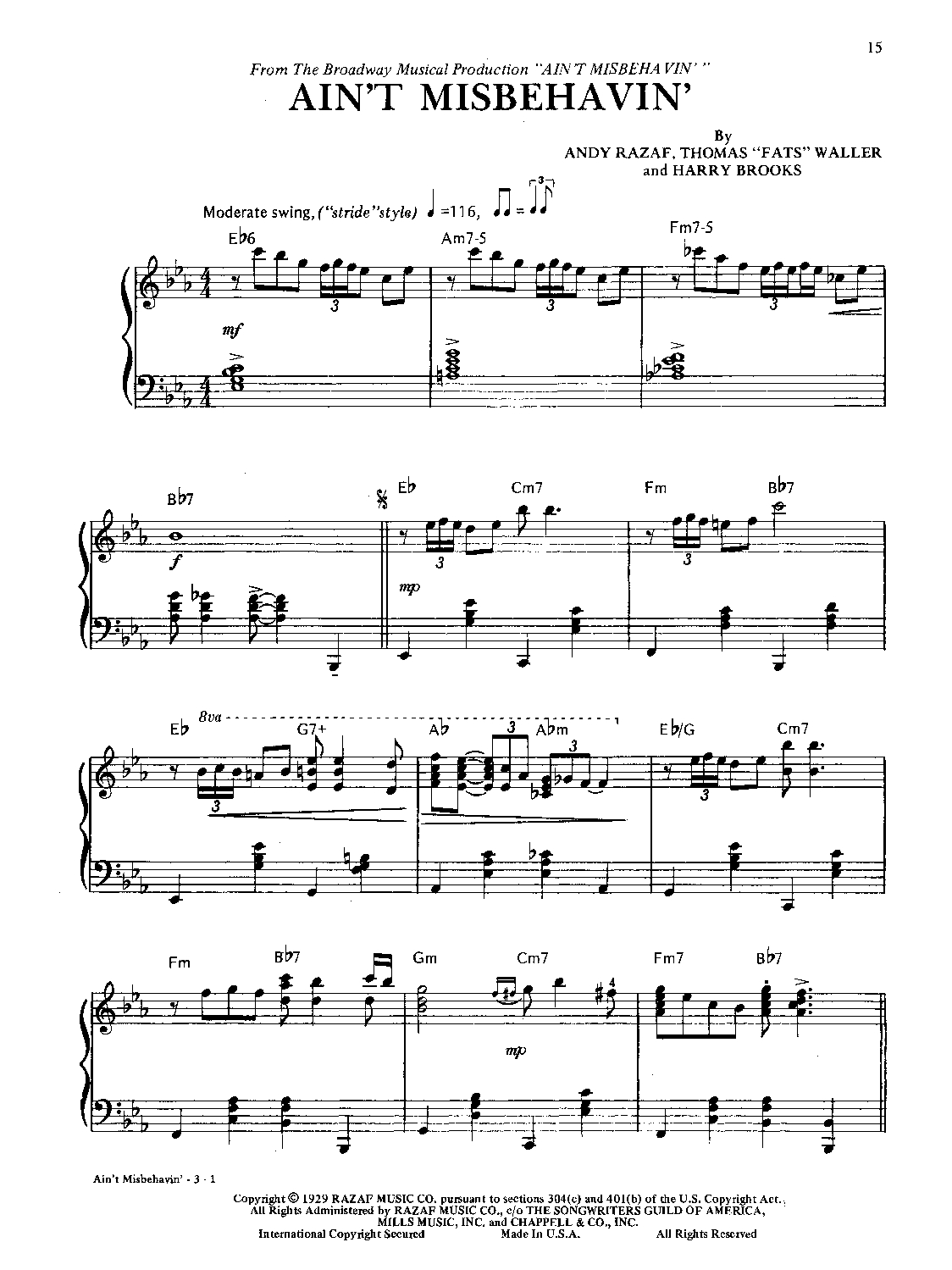 Ain't Misbehavin' (from “Ain't Misbehavin'”) – Fats Waller (composer); Andy Razaf (lyricist); Harry Brooks (composer)