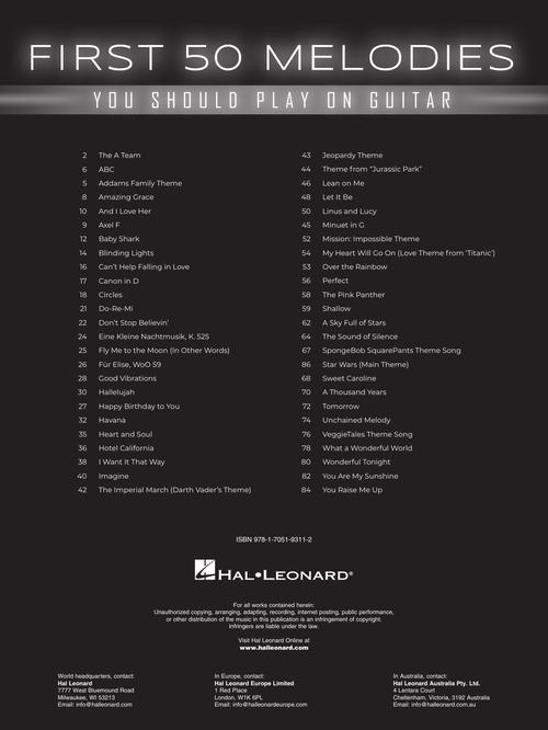If you've started learning to play the guitar, you are probably eager to learn some songs. This book provides an accessible combination of chords, standard notation, and lyrics for 50 of the most memorable melodies that all guitarists should know!