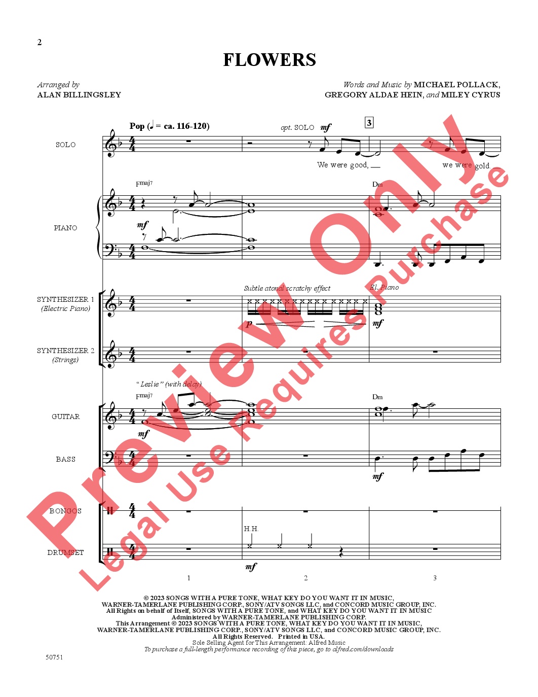 This Miley Cyrus dance-pop tune broke Spotify's record with over 100 million plays in its very first week, catapulting the funky track to the top of the Billboard Hot 100. With an empowering message of self-reliance, this streaming sensation is sure to strike a chord. Three no-fuss voicings, a small combo SoundPax, and a disco-toned SoundTrax complete the bouquet.