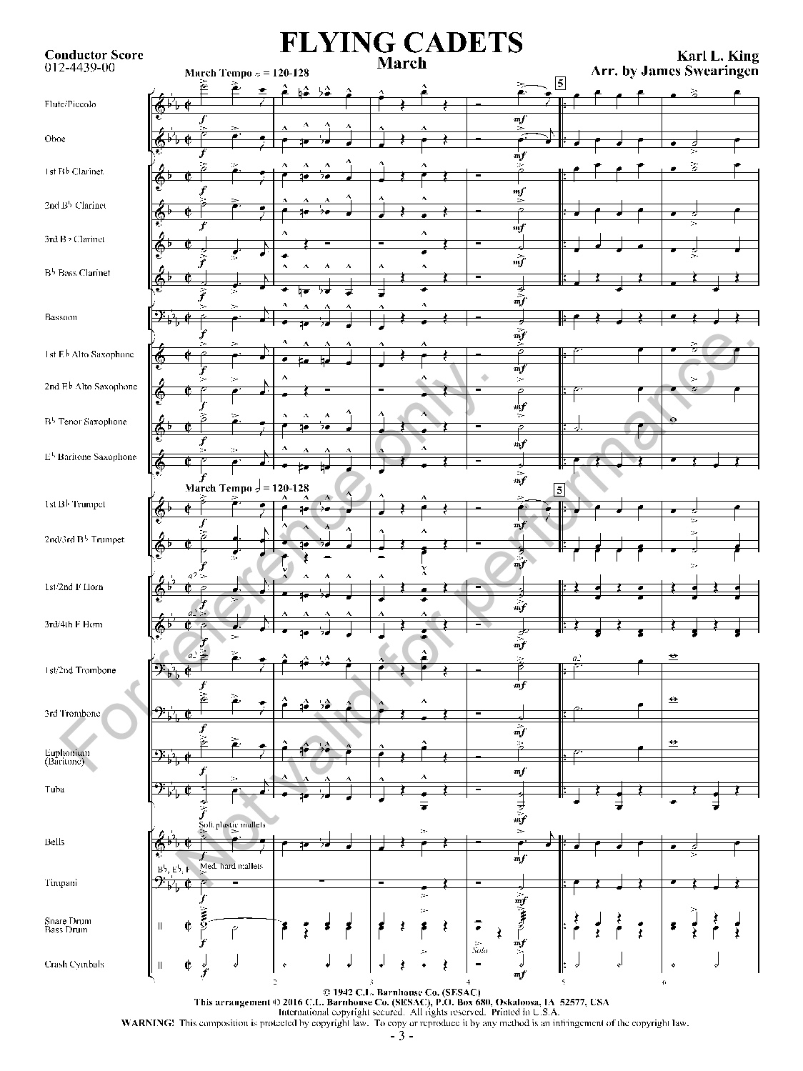 The vault of musical treasures at the C.L. Barnhouse Co. has yielded another classic march composed by the great Karl King, now masterfully arranged by James Swearingen. It goes without saying that King was a master at creating tuneful marches that have certainly stood the test of time. You can be assured that this latest edition is certain to be a real crowd pleaser of monumental proportion. A musical treat!