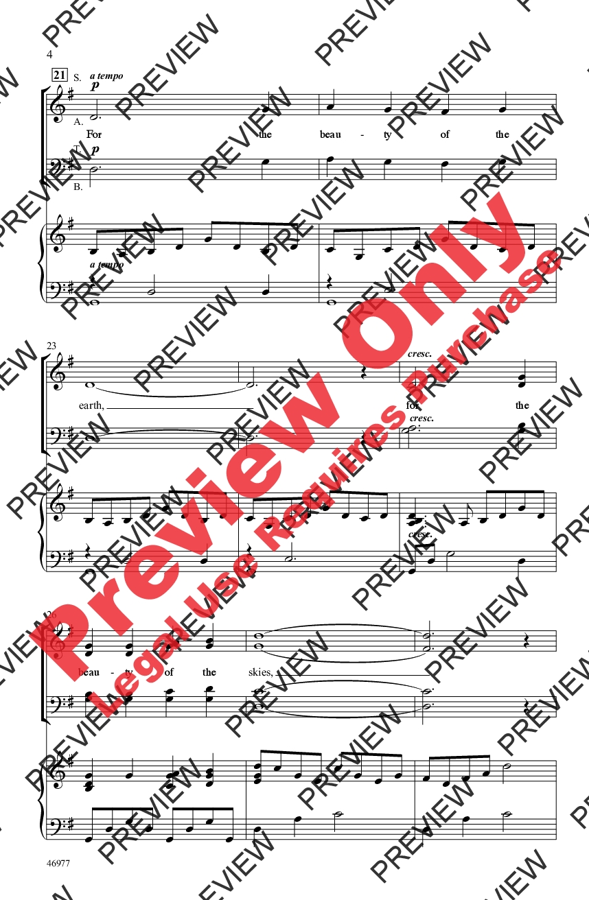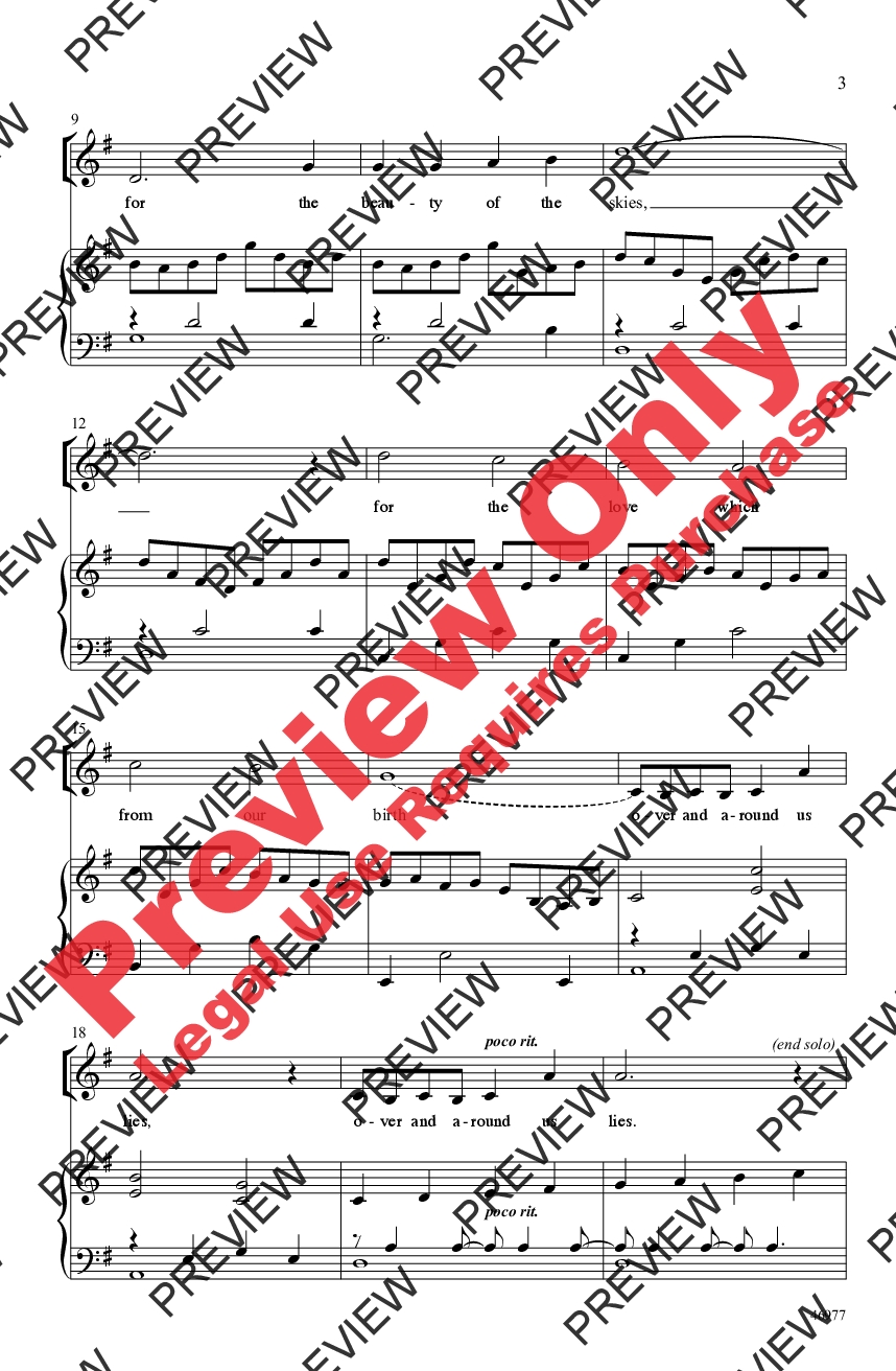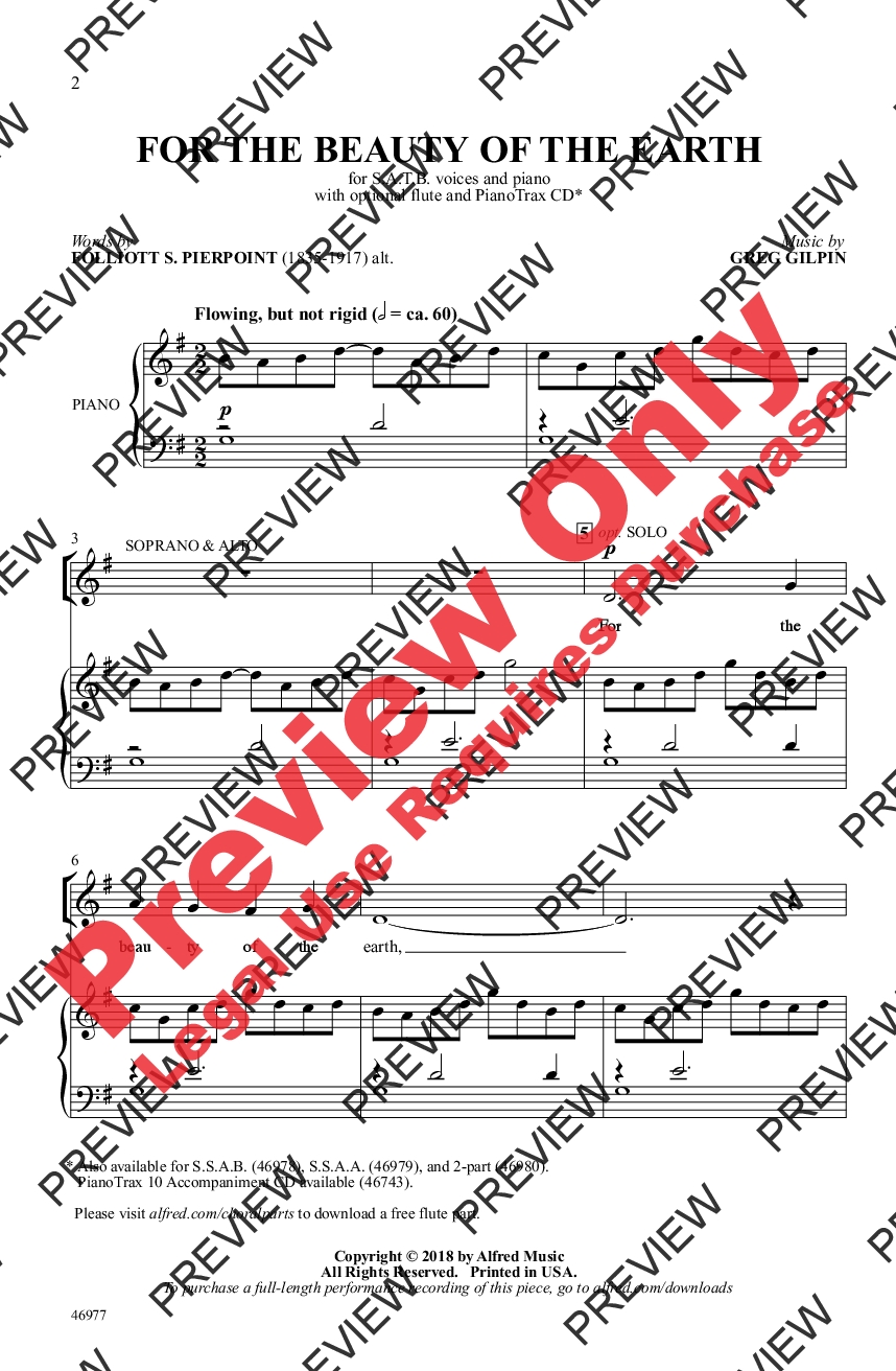 Over 100 years after his death, this beloved text from Folliott S. Pierpoint lives on in a gorgeous new choral setting. Greg Gilpin's artistry and skill shine through as each voice part takes a turn with the long legato melody and warm harmonies envelop the ear. An optional flute obbligato is available free online.
