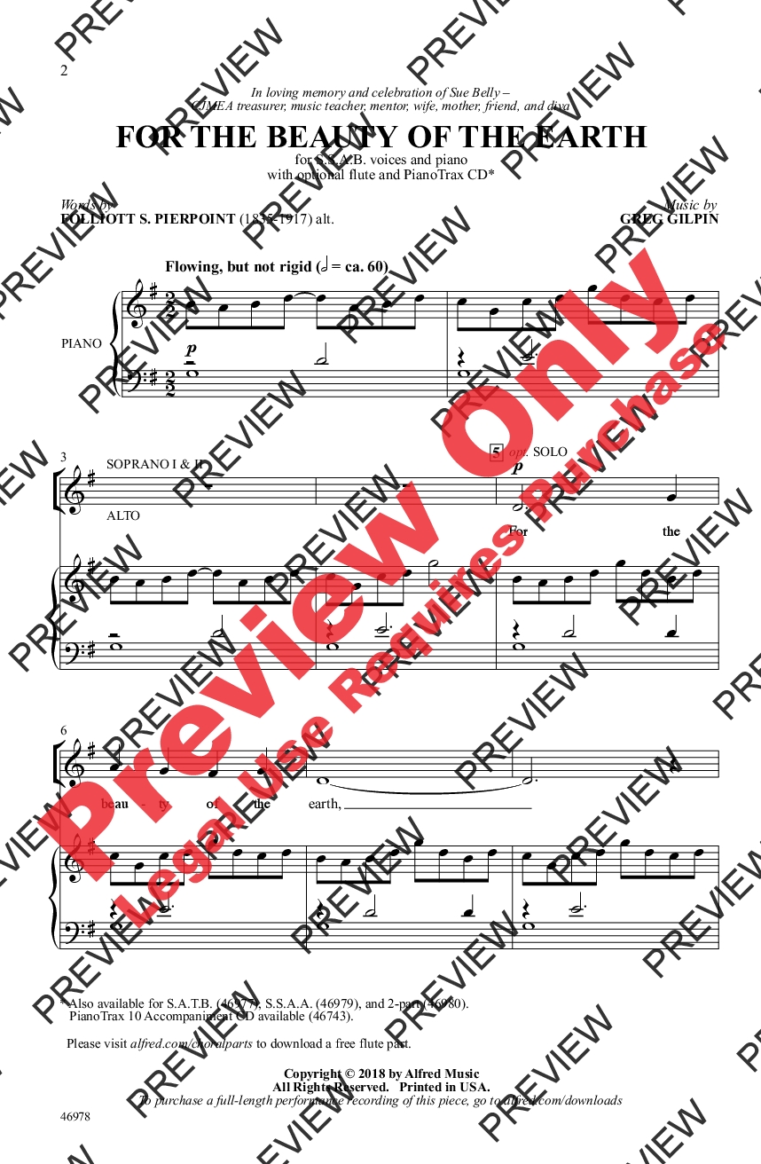 Over 100 years after his death, this beloved text from Folliott S. Pierpoint lives on in a gorgeous new choral setting. Greg Gilpin's artistry and skill shine through as each voice part takes a turn with the long legato melody and warm harmonies envelop the ear. An optional flute obbligato is available free online.