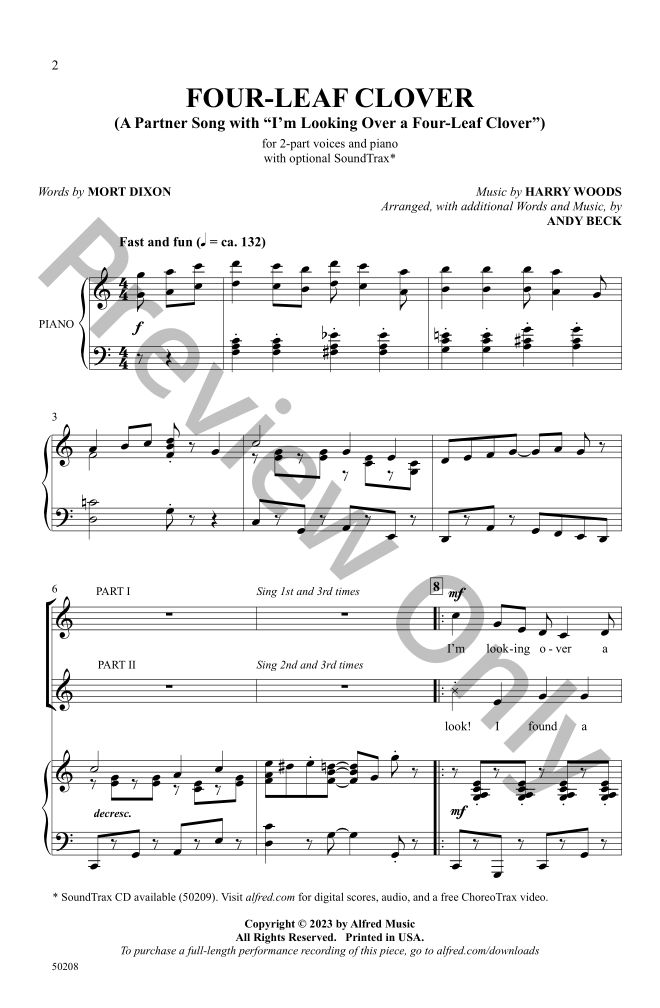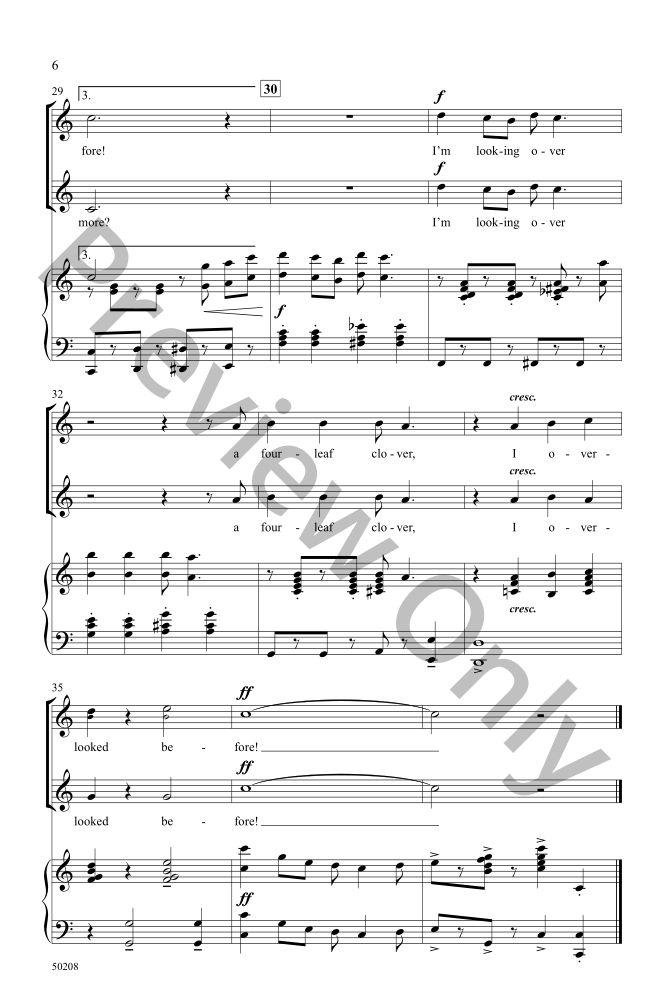 It's your lucky day! Here's a perky partner song that pairs new words and music with the traditional “I'm Looking Over a Four Leaf Clover.” Perfect for choirs just learning to sing in parts, both short songs are first heard on their own before everything fits together. Check out the free ChoreoTrax video for staging ideas.