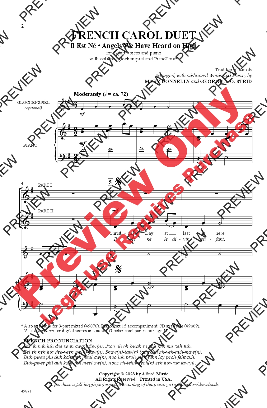 Seasoned directors know they can count on this writing team for quality developmental literature, like this piece—a perfect pairing for holiday concerts: “Il Est Né” and “Angels We Have Heard On High.” Sing in English throughout, or include some French text using the included pronunciation guide. Optional lyrics allow you to sing some French or entirely in English.