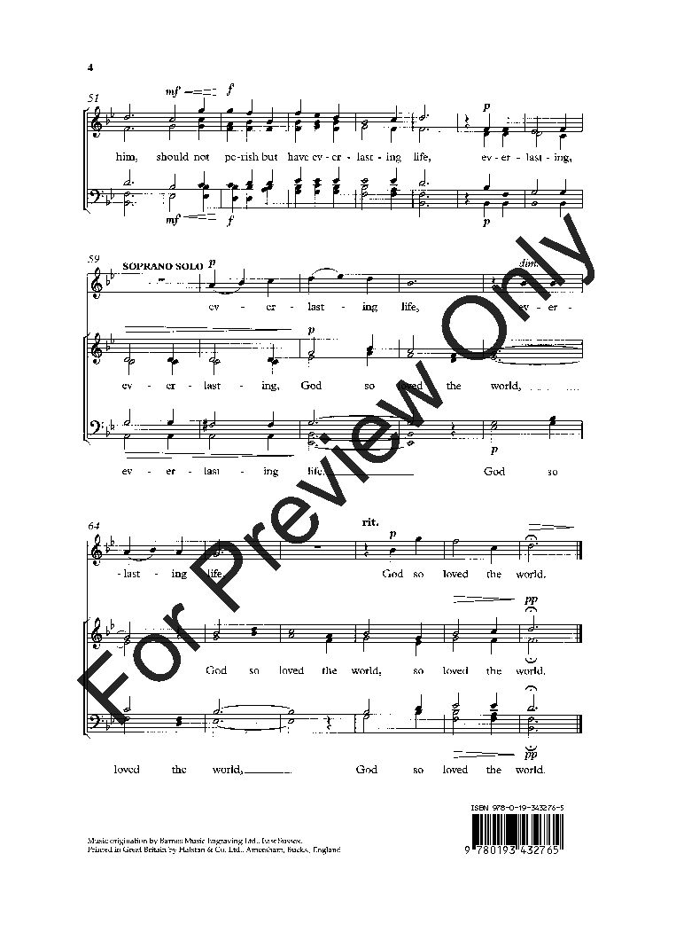 Fresh and unsentimental, this setting is as beautiful as the familiar anthem by Stainer of this much-loved text, and a worthy alternative.
