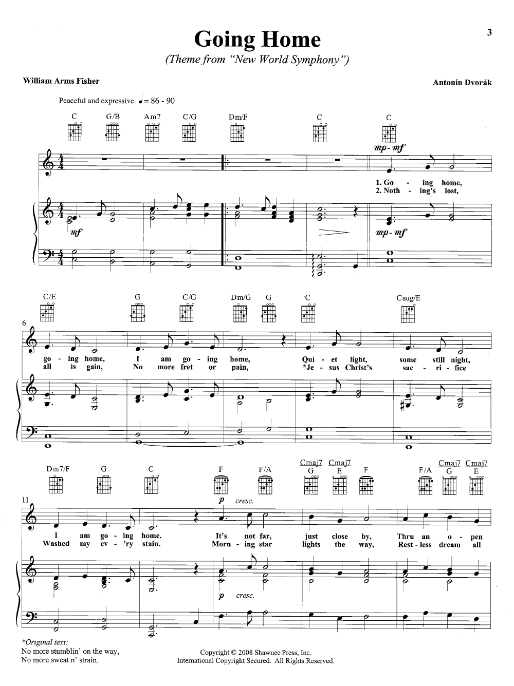 Finding just the right music for funerals and memorial services can be a challenge. So much needs to be considered: length, appropriateness, sentiment. Going Home is a wonderful collection which contains a variety of music for piano, solo or guitar. Two bonus CDs are included with demonstration recordings and accompaniment tracks, making this an invaluable resource useful for a variety of occasions, especially when rehearsal time is limited, or no accompanist is available. These musical selections will honor those passing on as well as comfort those who remain.