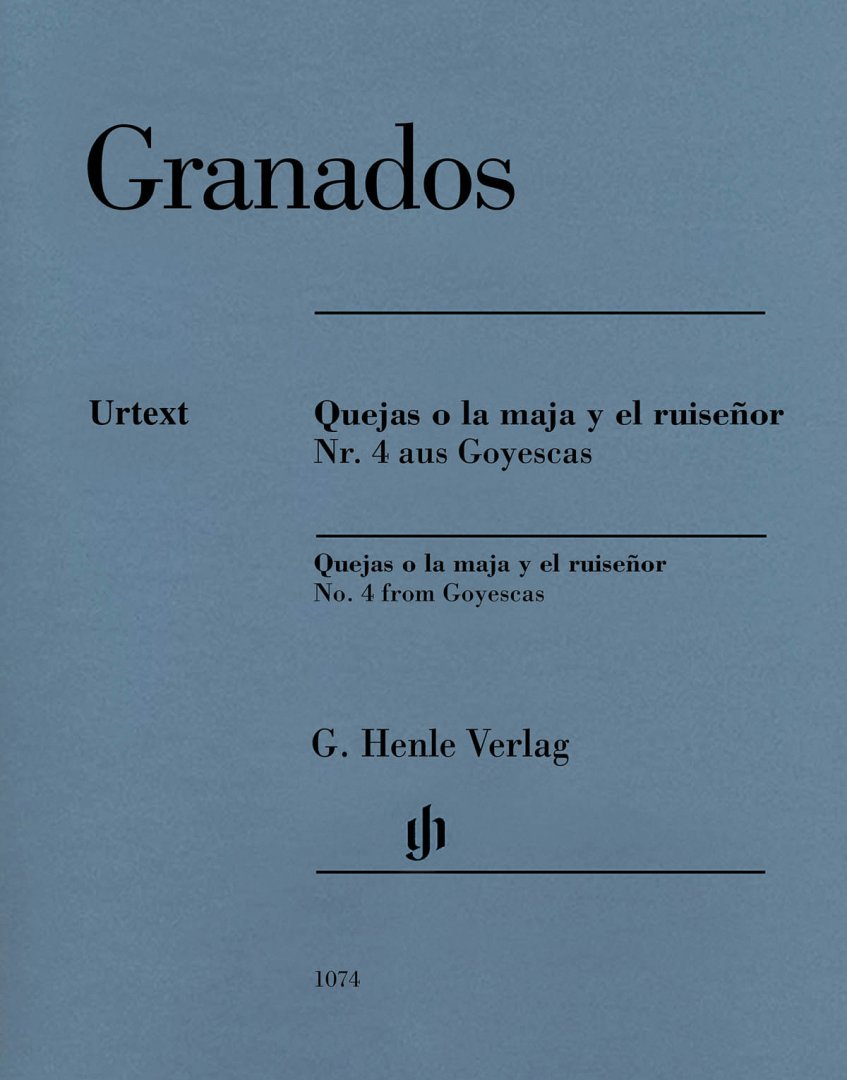 This “Lament, or the maiden and the nightingale” is the fourth movement of Granados' six-part piano cycle Goyescas (1909-11). The cycle's title is derived from the name of the Spanish painter Francisco de Goya, whose paintings inspired Granados. The Goyescas conjure up Goya's Spain of the late 18th century – chivalrous and sensual, but also melancholic and sombre. The overall theme is the life of two young lovers. The “Quejas” are a turning point in the cycle, because here jealousy leads to a lament that is joined by the song of the nightingale. The expressive intensity makes the movement the high point of the cycle for many, and G. Henle Verlag is now offering it as an individual Urtext edition.