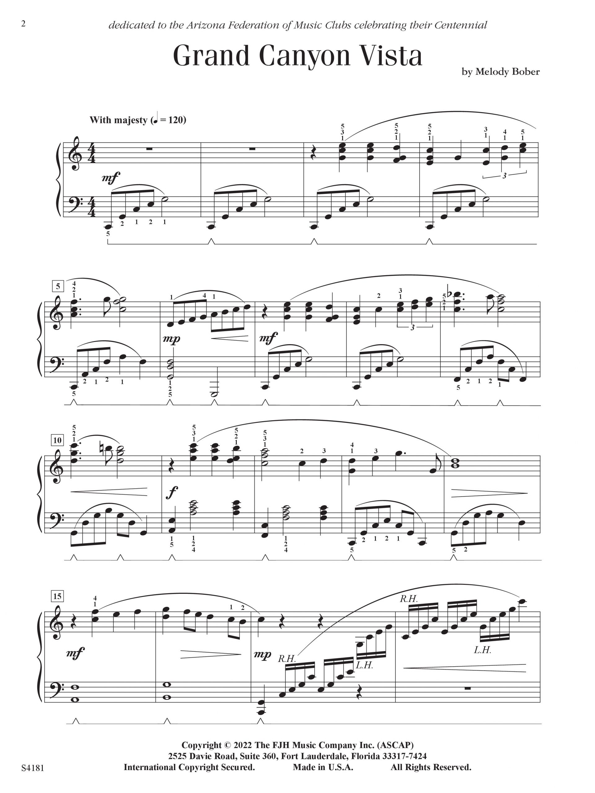 A big, majestic showstopper. This late intermediate piano solo by Melody Bober is the recital piece you need to showcase pianistic abilities. It contains octave runs, hands crossing and a bombastic ending, all in C major. Beautiful melodies and big chords create the mood for this sheet about a famous American landmark.