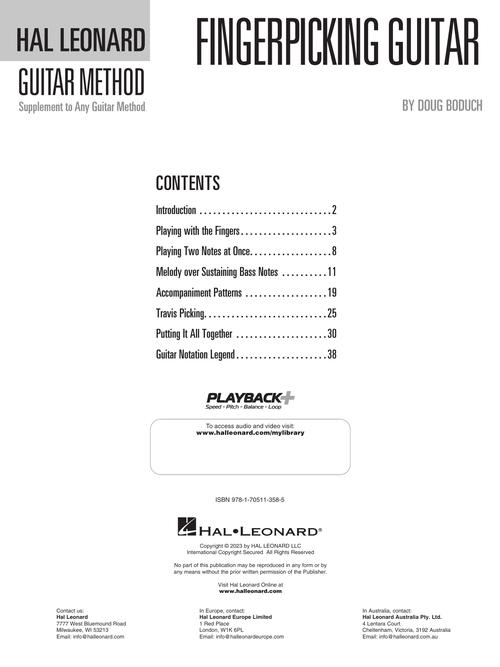 The Hal Leonard Guitar Method has been a mainstay for students of the guitar for many years. In this latest installment, the Hal Leonard Fingerpicking Guitar Method, guitarist Doug Boduch fast-tracks you through the fundamentals, utilizing familiar songs that are guaranteed to help you master this essential way of playing.