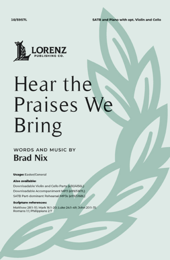 In this exciting anthem, Brad Nix pairs an original, energetic melody with a lyric that recounts the Easter story. The lively piano accompaniment, enhanced by optional violin and cello obbligatos, helps create a true moment of praise for choir and congregation alike. An excellent choice for Easter Sunday or any worship service throughout the year.