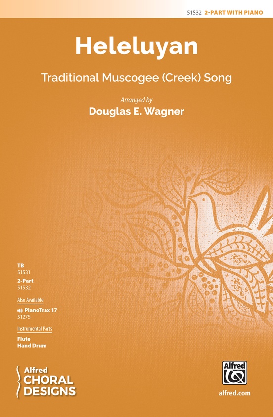 With only one Muscogee word of text, this unique arrangement of the traditional Creek song is easy to learn and assemble. Everyone sings a pair of 8-bar pentatonic melodies that later combine into a textured 2-part tapestry for treble or changed voices. Add the optional flute and hand drum instrumentation (parts included), characteristic of the music of indigenous Americans.