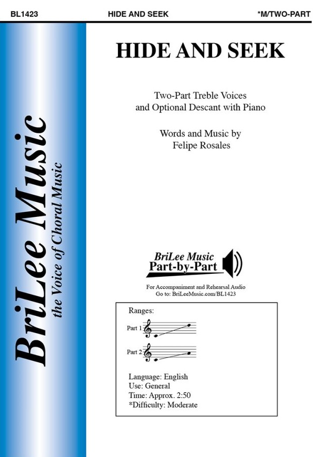 Hide and Seek by Felipe Rosales is a reflective two-part treble piece with piano and optional descant. Its steady, thoughtful pace captures the feeling of hiding; wanting to stay unseen, but also hoping to be found. The clear structure and expressive writing make it a strong choice for developing choirs learning to shape phrases and convey meaning through music.