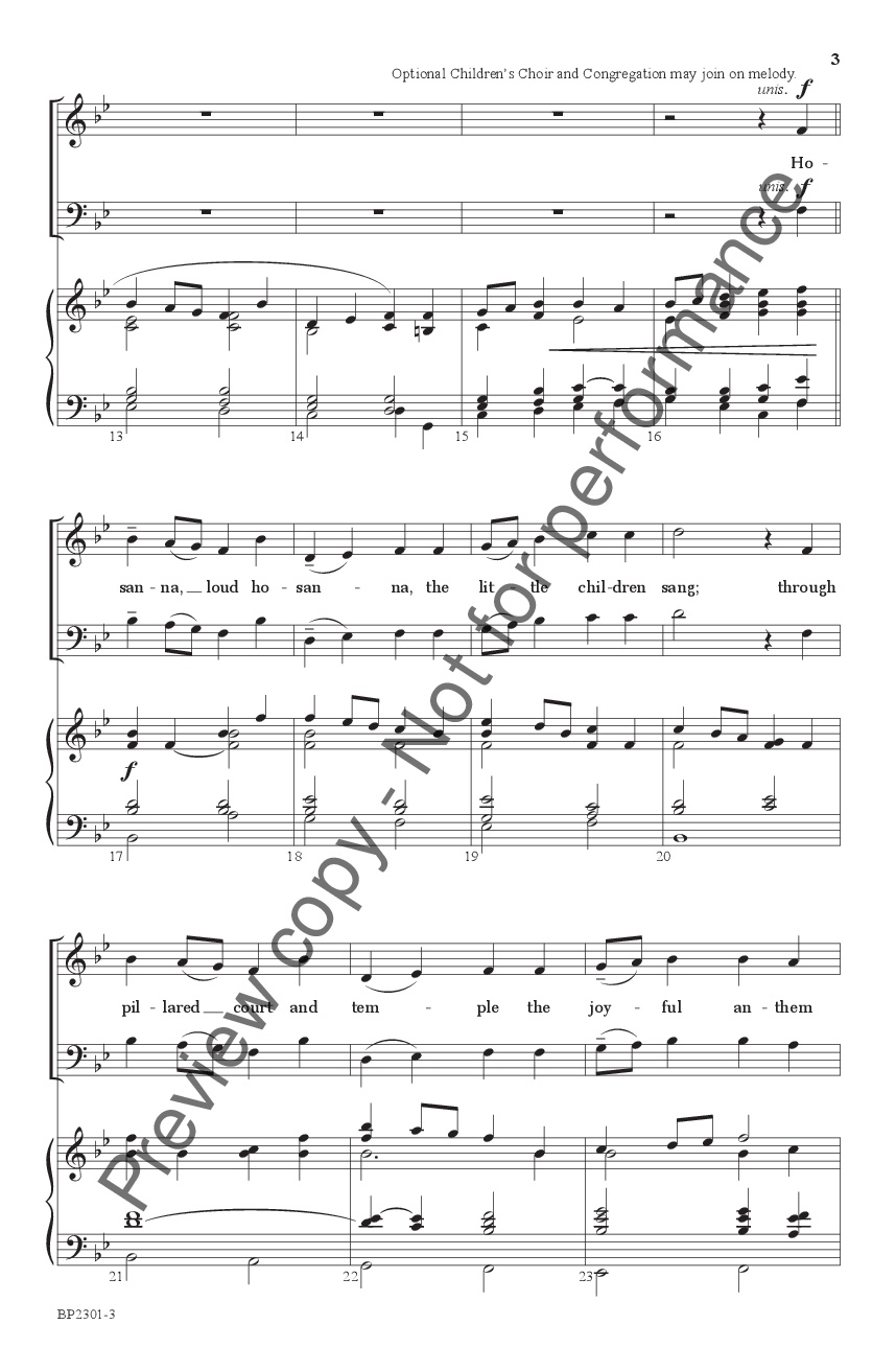 A new festival setting of the traditional hymn, sure to add energy and joy to your Palm Sunday celebration. For SATB choir and organ with optional brass quartet and percussion, as well as optional children's choir and congregation.