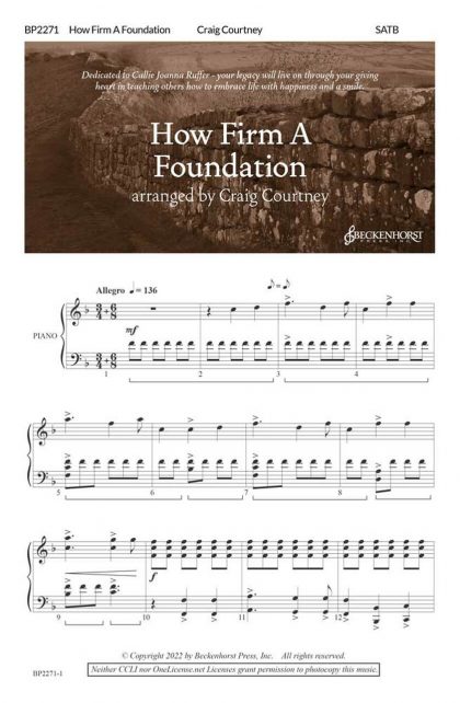 Syncopated rhythms combine with smooth melodic lines in Craig Courtney's energetic re-telling of the traditional American folk hymn for choir and piano. The final stanza's slow crescendo leads to a final statement of assurance and conviction.