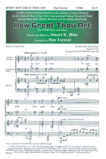 Dan Forrest’s compelling SATB arrangement is now available arranged for TTBB with all of the dynamic impact of the original. An orchestral accompaniment is available for purchase separately.