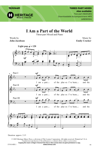 The iconic team of Emily Crocker and John Jacobson presents this vibrant song of unity for young choirs. The lyrics emphasize that we are shaped by the experiences we've had, the places we've been, and the people who surround us. With a light pop feel and catchy melody, this piece is perfect for choirs seeking an energetic, feel-good addition to their repertoire.