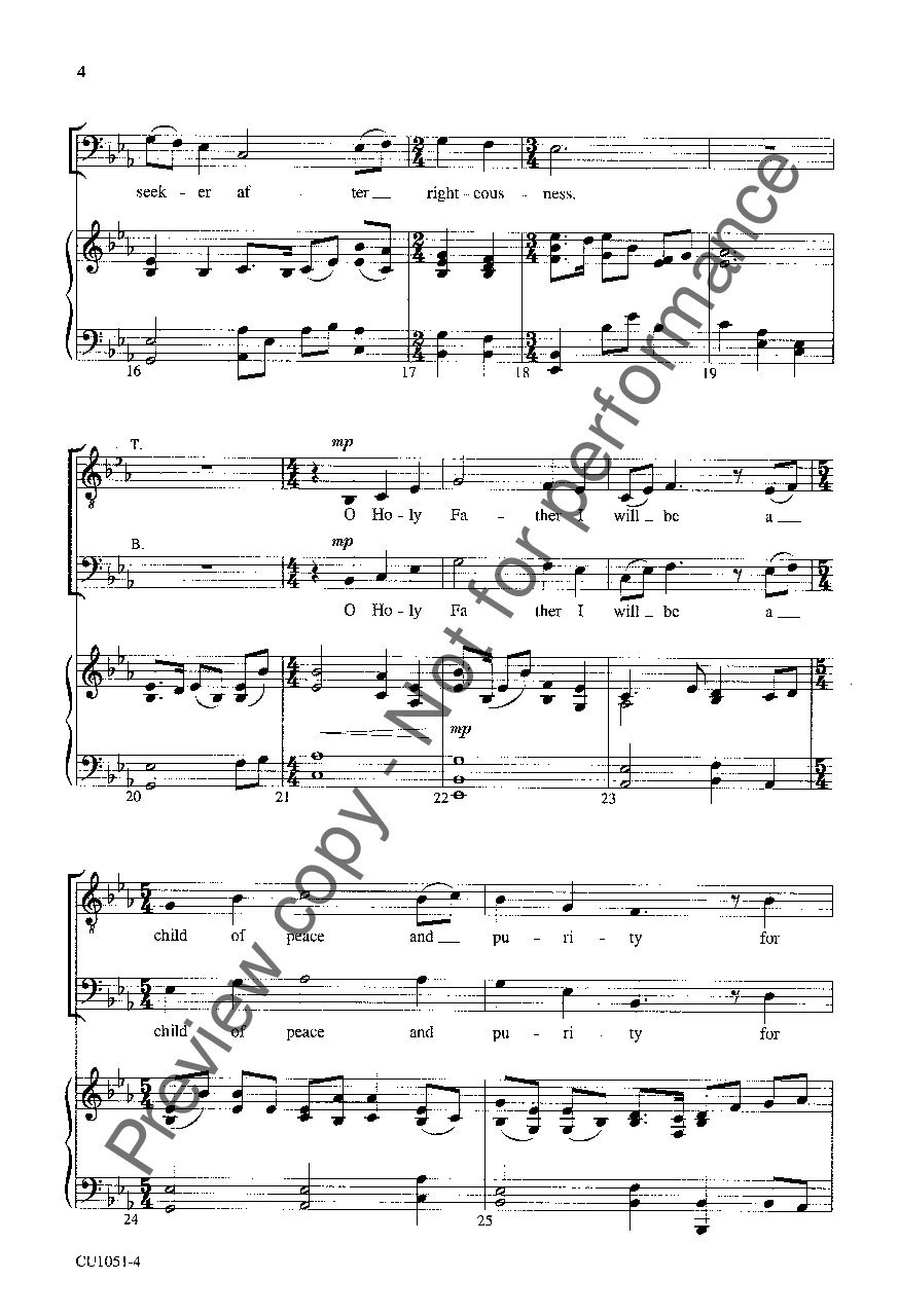 A beautiful arrangement of a traditional Shaker hymn, O Holy Father, for choir and piano accompaniment. This arrangement is particularly suitable in times of uncertainty. Perfect as a warm, affirmative call or response to prayer.