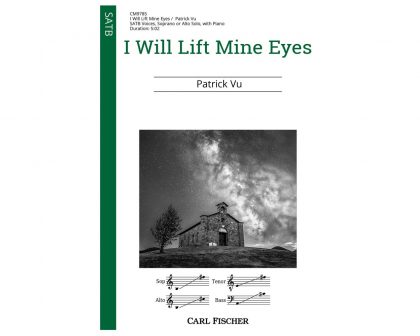 Patrick Vu brings a hopeful and accessible voice to I Will Lift Mine Eyes. Ideal for church and school, for large or small ensembles, his elegant writing, combined with the beautiful 121st Biblical Psalm text, is sure to inspire and provide hope.