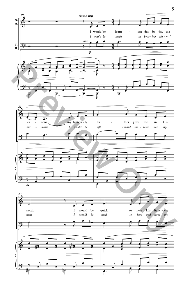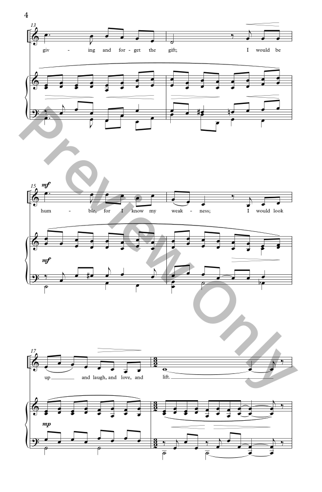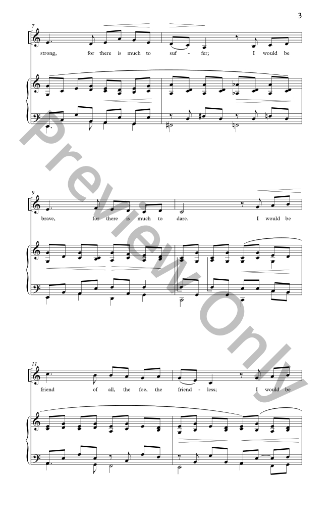 Mack Wilberg has arranged the well-loved Irish folk melody Londonderry Air, setting to it the words of Howard A. Walter's poem 'I would be true'. Alternative words to the second and third verses by David Warner are also included.