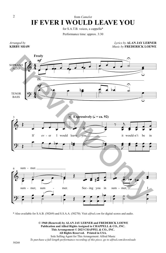 The cherished love song from Camelot receives a classic choral treatment in this lush, a cappella setting. Equally suitable for large ensembles or small vocal jazz groups, Kirby Shaw's impressive arrangement presents Lerner and Loewe at their finest!