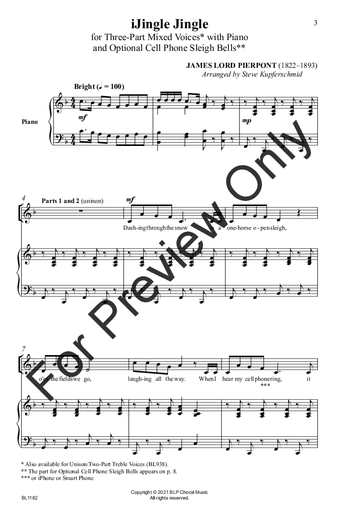 • Accompaniment: Piano with opt Cell Phone Sleigh Bells