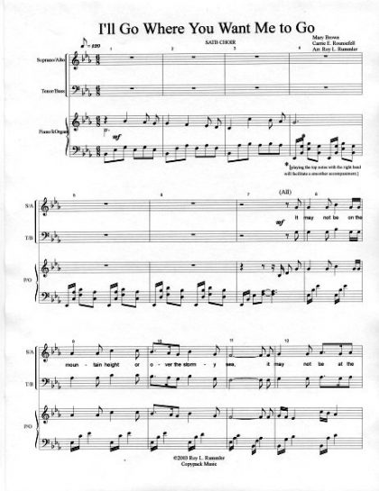 I'll Go Where/to Go SATB (License/30 Copies)