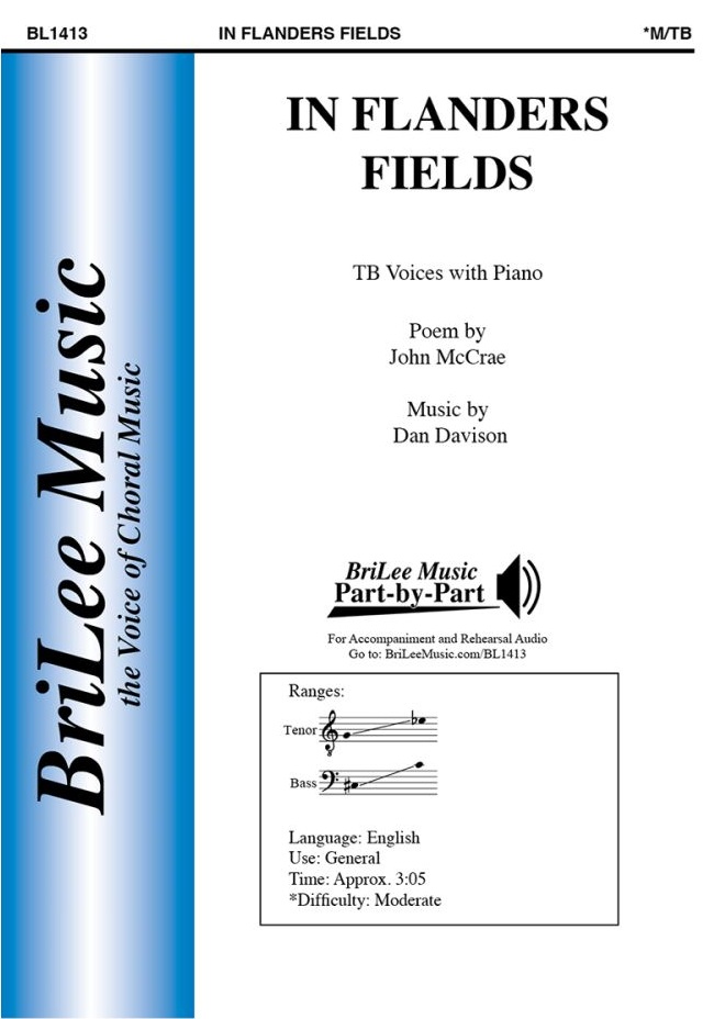 In Flanders Fields by Dan Davison is a powerful tenor–bass setting of the iconic World War I poem. A beautifully haunting piano accompaniment supports long, sustained vocal lines that encourage tone development and expressive singing. Thoughtfully written for developing tenor–bass choirs, this arrangement provides both musical challenge and a moving sense of reflection and honor. Also available for SA(T)B voices (BL1434).