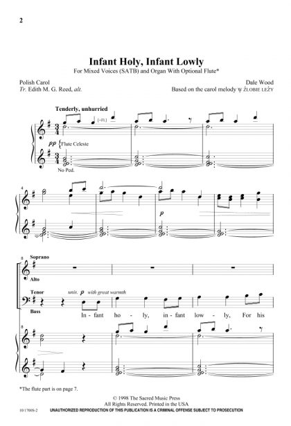 An exquisite blending of a hushed organ accompaniment, a gentle flute, and masterfully designed choral writing. This lullaby, based on a familiar Polish carol, is certainly one of this composer's most gorgeous efforts, and will surely be requested year after year.