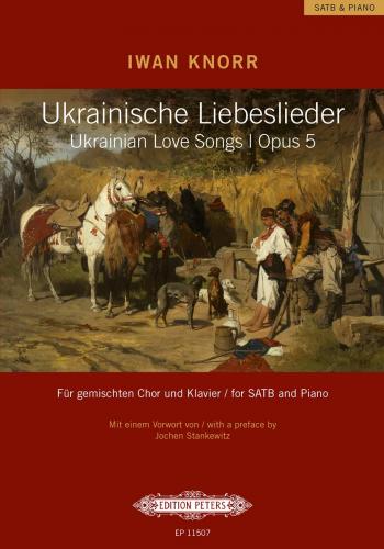 Iwan Knorr’s Ukrainian Love Songs Op. 5 for four voices and piano have the same flexible choral or one-per-part scoring as the Liebeslieder Waltzes Op. 65 by Johannes Brahms, to which they compare also in terms of compositional quality. Inspired by the Ukrainian Cossack tradition, Knorr’s cycle of nine settings combines lyrically romantic vocal writing with spirited virtuoso piano accompaniments. The poems tell stories of impassioned love, heroic warriors and the anxious wait for their safe return.