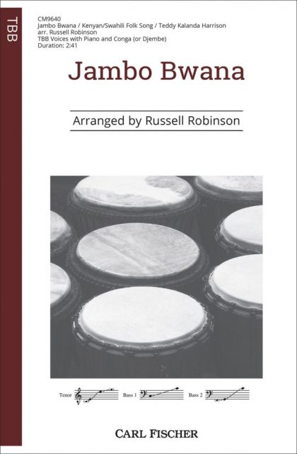 Russell Robinson first heard Jambo Bwana when Duncan Miano Wambugu started the Africa Choir Pazeni Sauti at the University of Florida in 2009. He recruited Miano as the start of an institutional linkage program between the University of Florida and Kenyatta University. Robinson has arranged this work so that it is faithful to Terry Kalanda Harrison's original imagining of this Kenyan song of peace. Carl Fischer is excited to share this popular Kenyan/East African song with tenor bass choirs of all sizes and abilities. Also available for Three-Part Mixed Voices (BL926).