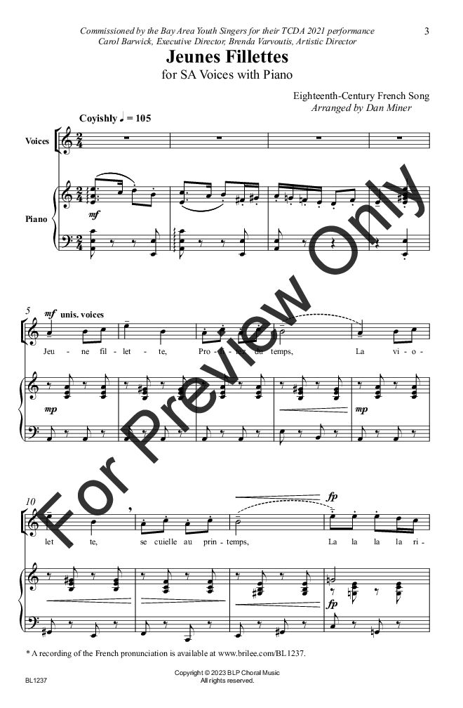 Miner's setting of this playful and flirtatious text is perfect for the developing SA choir. With many opportunities to explore phrasing, articulation, dynamics, and drama, Jeunes Fillettes is an all-around great teaching piece! Don't be afraid of the French, as there is a pronunciation recording available to aid in learning. Highly recommend!