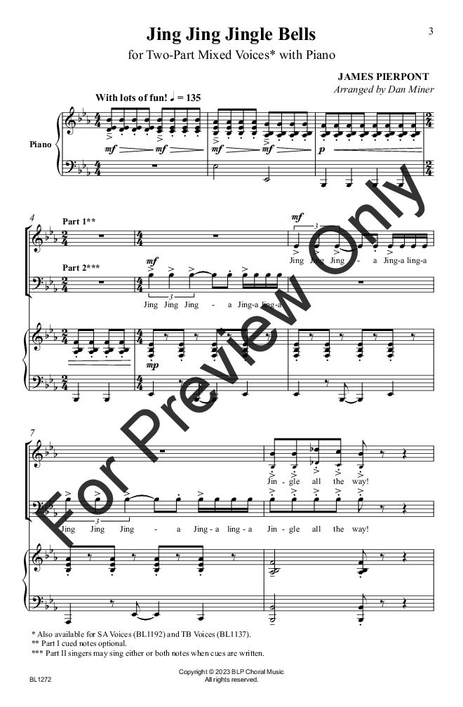 This clever, energetic setting of Jingle Bells has interesting repetitive patterns and a rhythmic ostinato which will prove to be a fun journey for the emerging mixed choir. A holiday programming MUST!