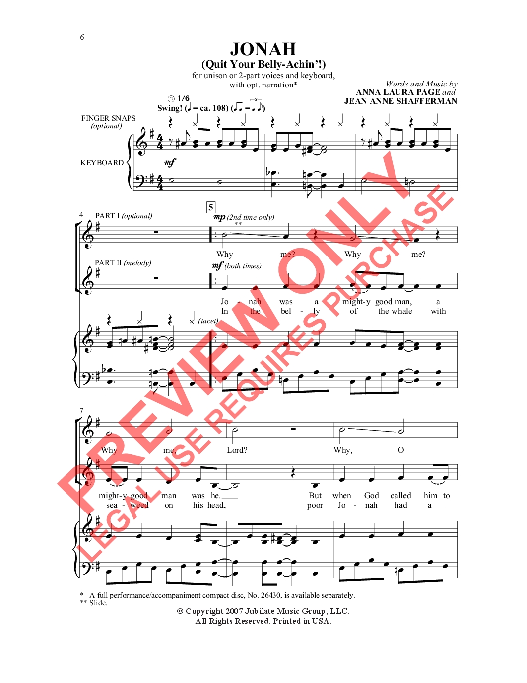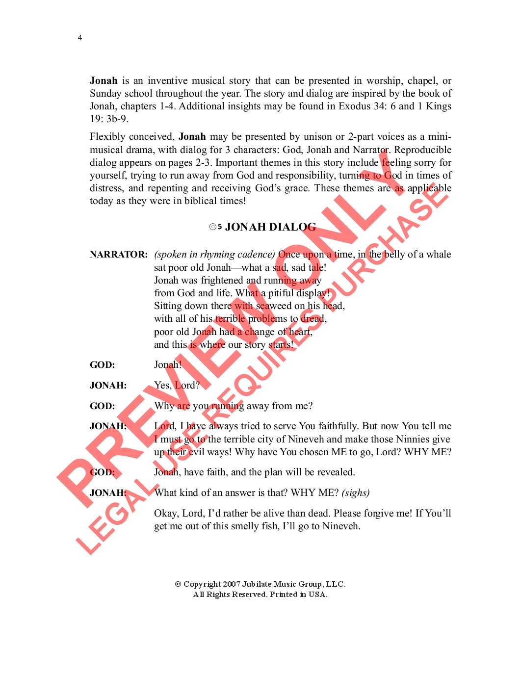 The jazzy, finger-snapping opening of this fun to sing song about Jonah portends what’s to come. Important themes include feeling sorry for yourself, trying to run away from God and responsibility, turning to God in times of distress, and repenting and receiving God’s grace. Unforgettable!