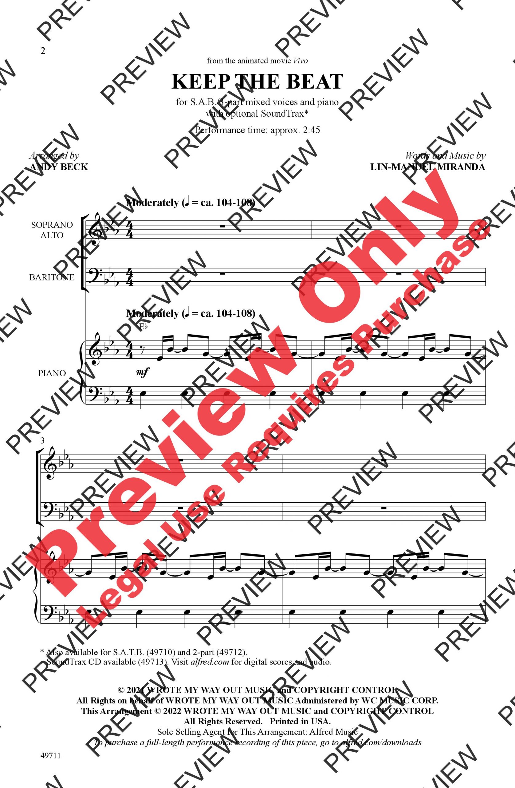 Here's an optimistic Lin-Manuel Miranda original jam-packed with his energetic signature style. Syncopated rhythms and rap-like riffs come to life with a singable melody, bright choral harmonies, and a lively counterline descant. Don't miss the flexible body percussion interludes that bring the beat-keeping theme to life. Featured in the animated movie musical Vivo, this is an uplifting pep talk about the power of perseverance, perfect for our time. What should we do when things don't go as planned? “Play on and keep the beat!”