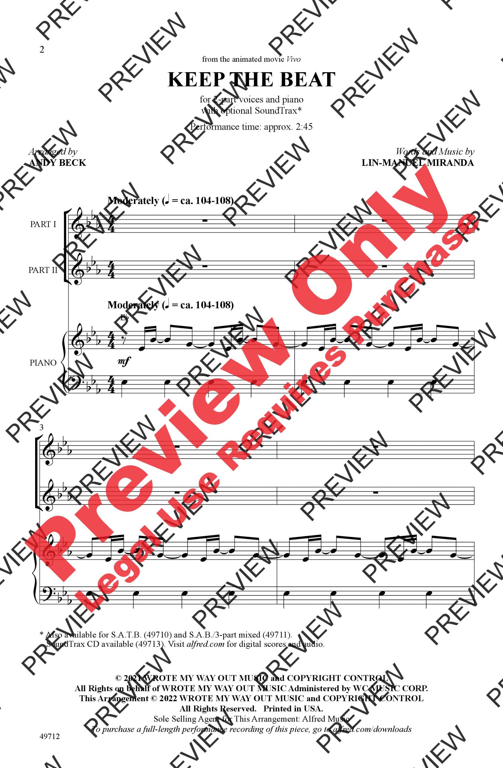Here's an optimistic Lin-Manuel Miranda original jam-packed with his energetic signature style. Syncopated rhythms and rap-like riffs come to life with a singable melody, bright choral harmonies, and a lively counterline descant. Don't miss the flexible body percussion interludes that bring the beat-keeping theme to life. Featured in the animated movie musical Vivo, this is an uplifting pep talk about the power of perseverance, perfect for our time. What should we do when things don't go as planned? “Play on and keep the beat!”