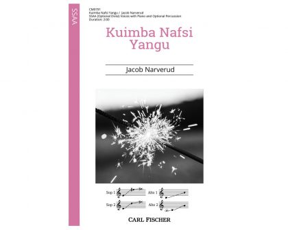Kuimba Nafsi Yangu is a celebratory song derived from the following common Swahili phrases of joy, “Sing my soul, sing my heart. Sing for peace, sing for joy. There is so much love here, yes!” Intended as a concert opener or closer, this spirited piece is pure energy from start to finish!