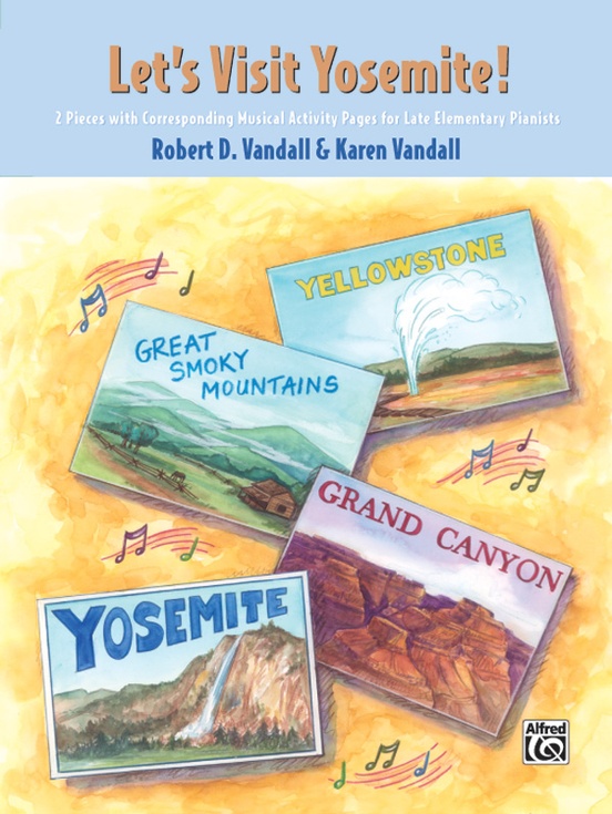In Let's Visit Yosemite, late-elementary piano students can journey to Yosemite National Park in California. The set includes two solos and three activity pages. The activity pages review musical concepts featured in the solos. Through the music and activity pages, students will learn about the park's most popular attractions. These include Yosemite Falls, the giant sequoia trees in the Mariposa Grove, and Half Dome, the magnificent granite face that rises above Yosemite valley. 8 pages.