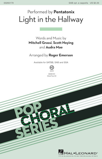Here is a gentle lullaby written and performed by Pentatonix. Traditionally sung in front of a single microphone in live performances, “Hallway” featured bass Avi Kaplan during his final year with the award-winning group. This arrangement can be sung a cappella or with the piano and bass parts provided. Suitable for concert, jazz or show choirs.