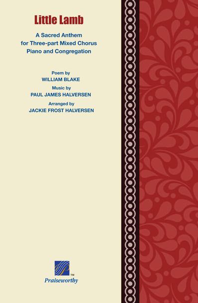 Sacred anthem arranged for mixed chorus (SAB) and piano. Text adapted from 'The Lamb' by William Blake.