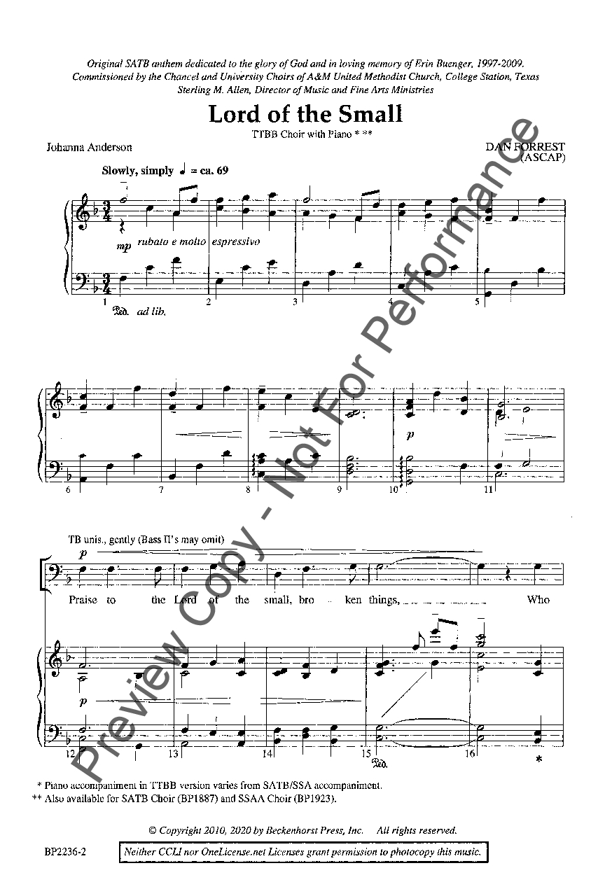 A tender hymn of praise, reminds us that in the end we are all frail and broken in the hand of a merciful God. Well within the reach of a small choir. Suitable for a memorial service or other service of remembrance.