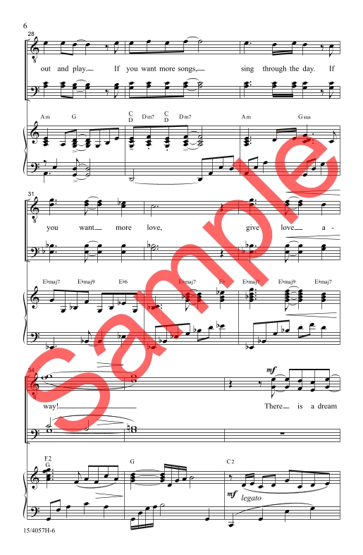 Written by Kristi Matal and Craig Long and arranged by Mark Hayes was arranged for and dedicated to the Sacramento Valley Concert Choir of Sacramento, CA. Expressing joy and love through music is at the heart of this work and spreading love in all aspects of our live. This vibrant peace is a joy to share with audiences for community, collegiate, and high school choirs.