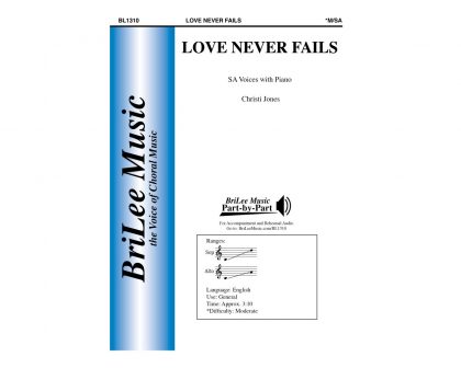 “Love simply defies definition – we are left to describe it” and Jones does that very thing in this beautifully well-crafted SA piece, appropriate throughout the year. The work sets the text of I Corinthians, and contains supportive accompaniment and accessible vocals.
