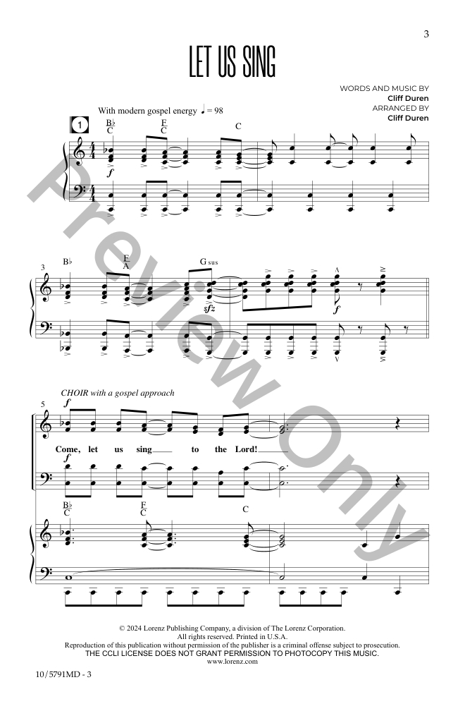 Let Us Sing is an upbeat, energetic original song from Cliff Duren in a gospel style. Perfect to open your worship service, choirs will love the irresistible melodic hook and the soulful breakdown proclaiming, “He’s worthy!” You won’t want to miss this opportunity to add this one to your choir’s repertoire!