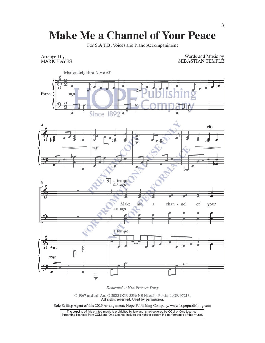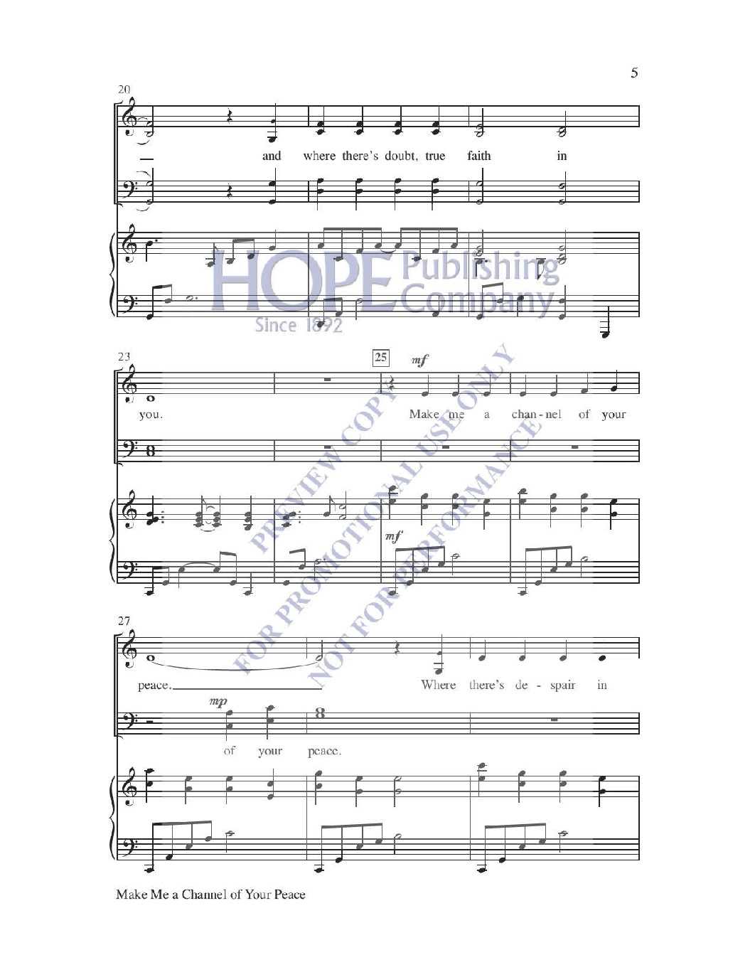 With alluring harmonies, exquisite voice leading, and an elegant piano part, this refreshing setting of Sebastian Temples’ Prayer of St. Francis calls us all to be peacemakers.