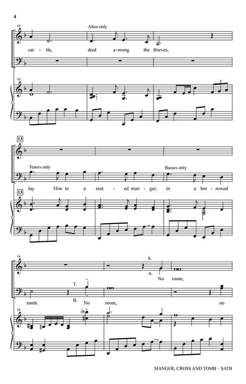 Look beyond the manger and see the unfailing love that sent Christ to die in our place. This creative text reminds us of a rented manger and a borrowed tomb and takes us on our own journey of faith. Inspired music supports and enriches the experience with creative harmonies and memorable melodies. An ideal selection for Candlelight Communion observances. Truly unique!