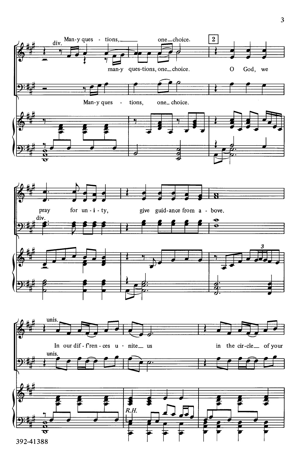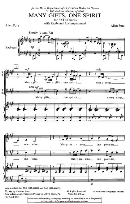 An exceptionally nice text focusing on the fact that although we are all different we are united with God's love. An easily singable anthem for any size choir.