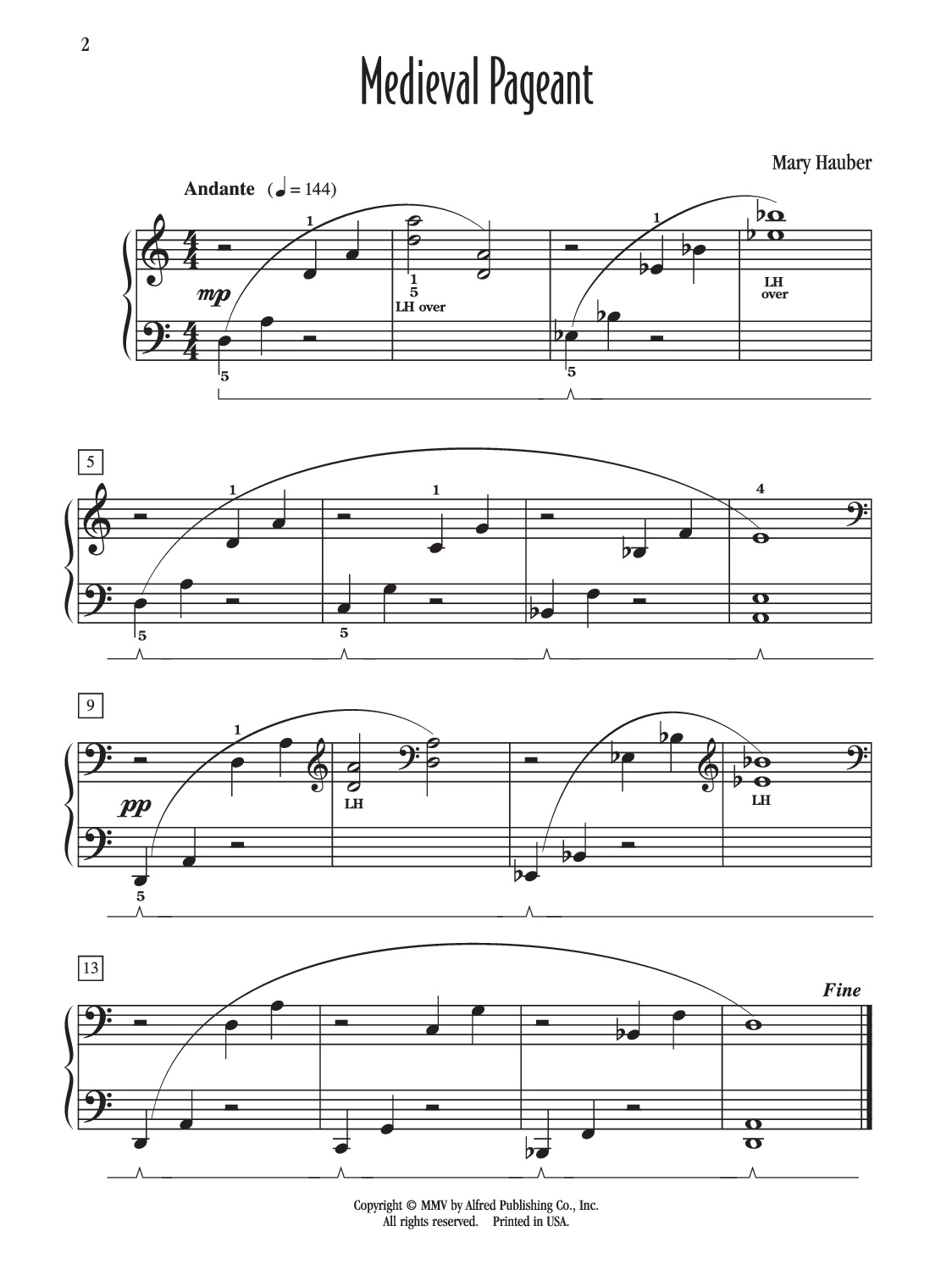 This is an excellent solo for getting students to move around the keyboard with ease. Both hands play fifths, beginning with broken fifths in the left hand, moving to the right hand and followed by the left hand crossing over with a blocked fifth. These fifths move to different keys, creating a modal sound and thus evoking the title. The use of the damper pedal aids in allowing the hands to move easily over the keyboard in to the different positions.